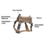 Easy Adjustable Dog Harness: 4 quick release buckles for easy put on and off while providing extra security; With one top handle for your dog’s lead & control and one V-ring on the front for dog leash attachment.