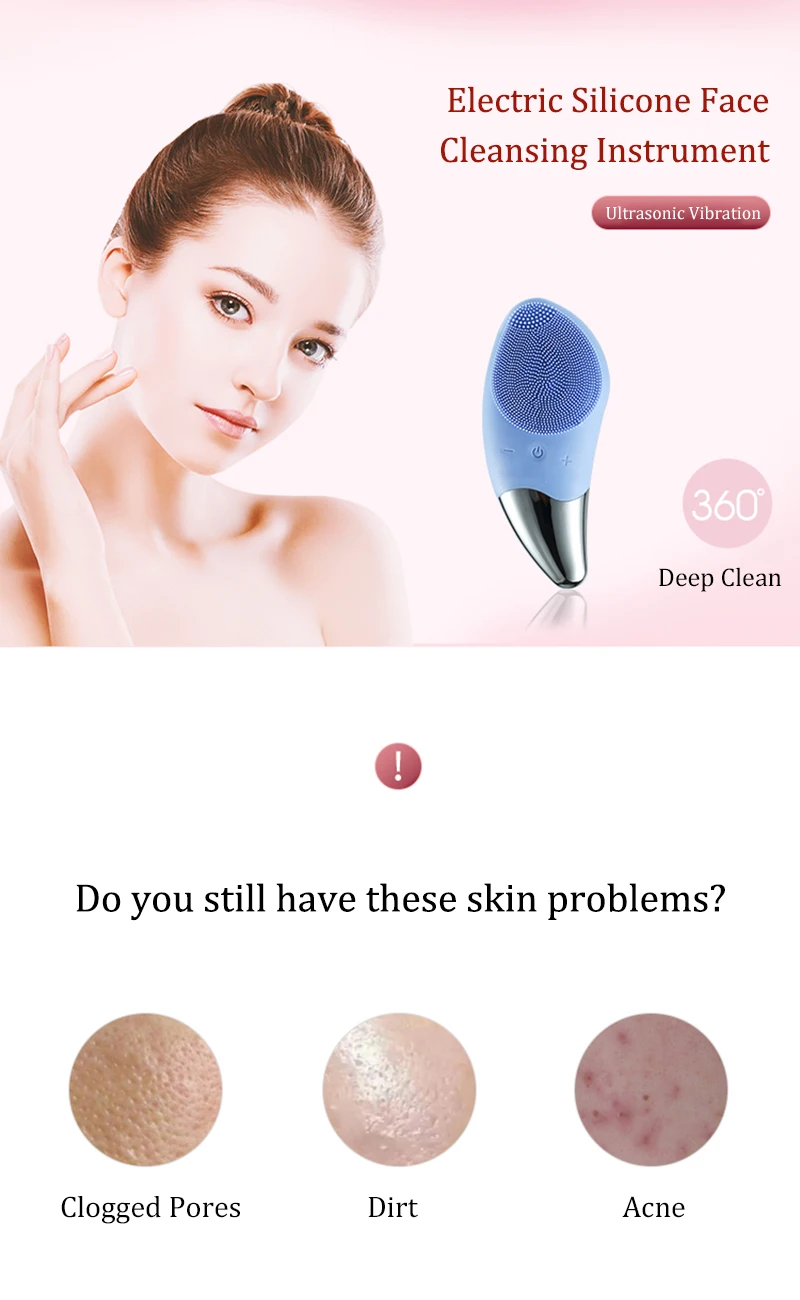 2 IN 1 Ultrasonic Vibration Electric Facial Cleansing Brush Eye Face Massager