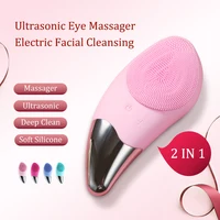 2 IN 1 Ultrasonic Vibration Electric Facial Cleansing Brush Eye Face Massager