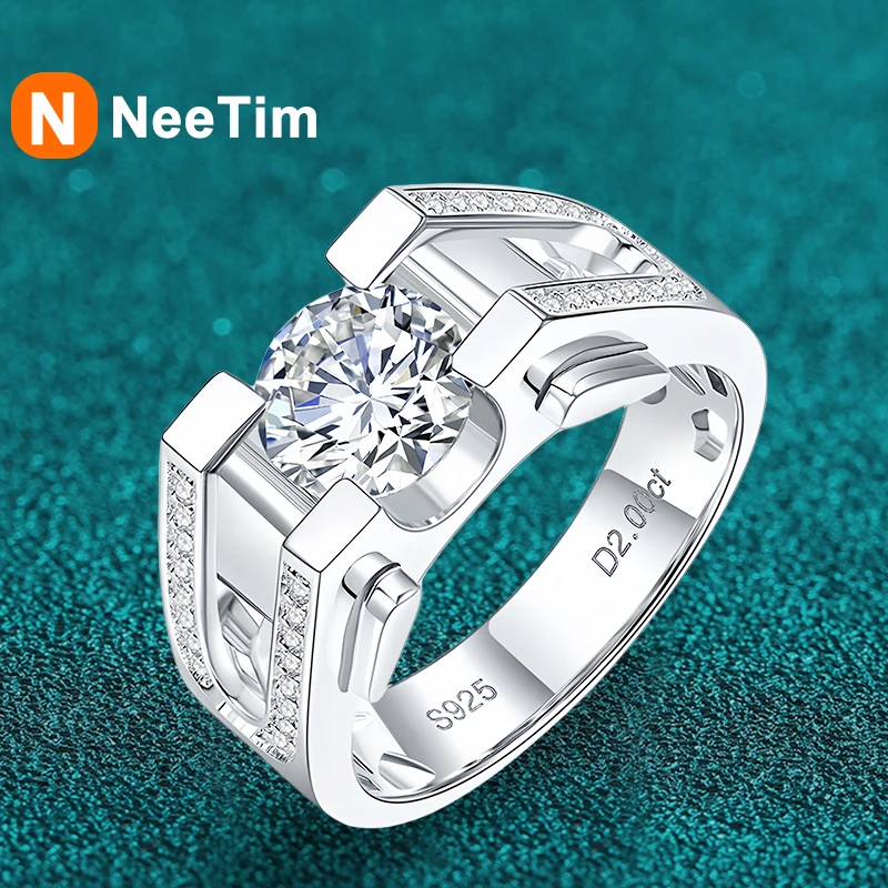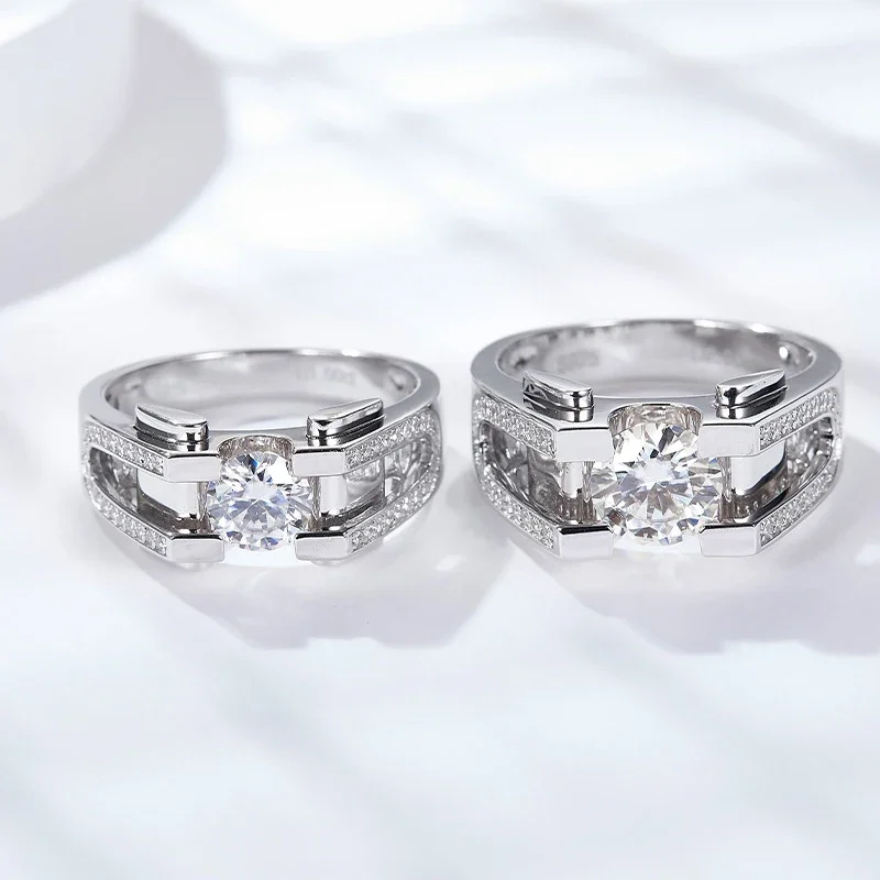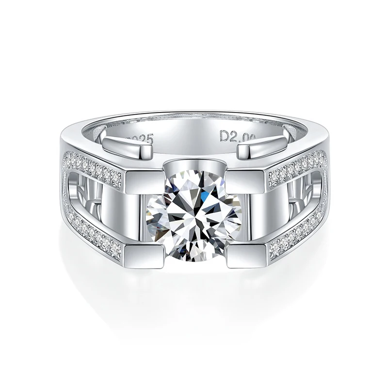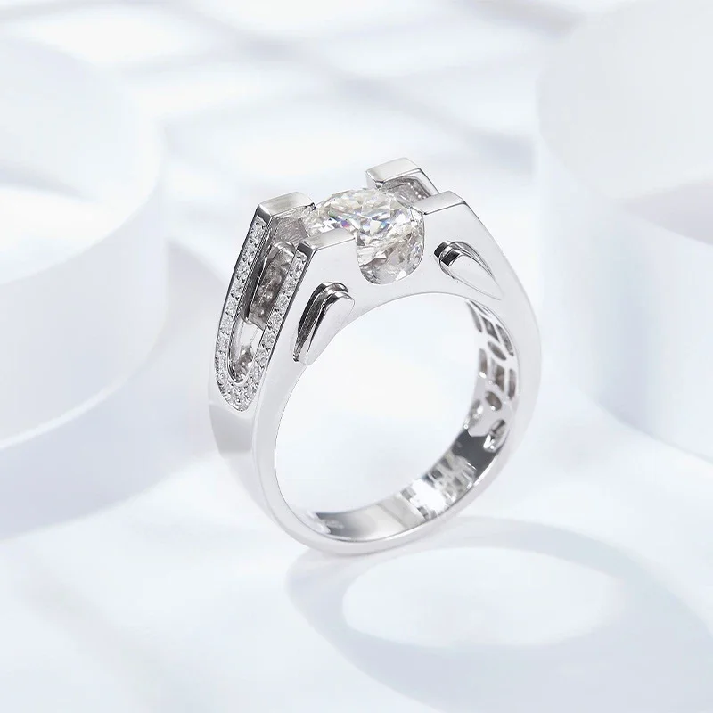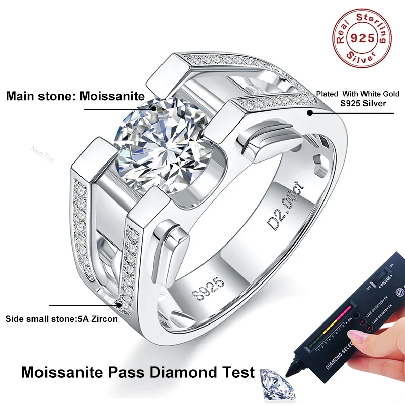 1ct 2ct Moissanite Ring For Men 925 Sterling Silver with White Gold Plated Rings