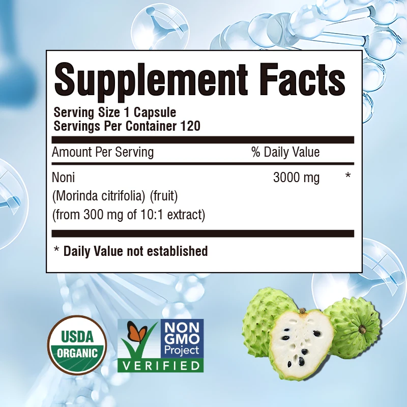 Potency: Each serving of Noni extract in rapid-release capsules is equivalent to 3,000 mg.